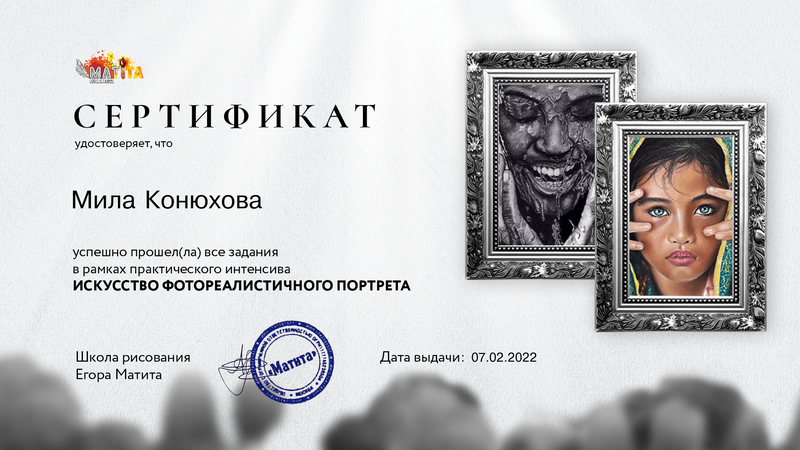 С моего детства мое сердце принадлежит искусству, волшебному миру красок, форм и кистей. В течение более двух лет я занимаюсь в художественной школе "Матита", где постоянно окружена талантливыми художниками, что благоприятно сказывается на моем творчестве. Сертификаты и опыт работы с крупными клиентами подтверждают мою профессиональную пригодность. Я использую только высококачественные материалы и всегда несу ответственность за каждый заказ.